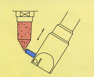擺動(dòng)式砂輪修整器,金剛筆沿砂輪錐面母線移動(dòng)同時(shí)以與砂輪中心成30°交線為中心進(jìn)行擺動(dòng),以減少修整誤差。