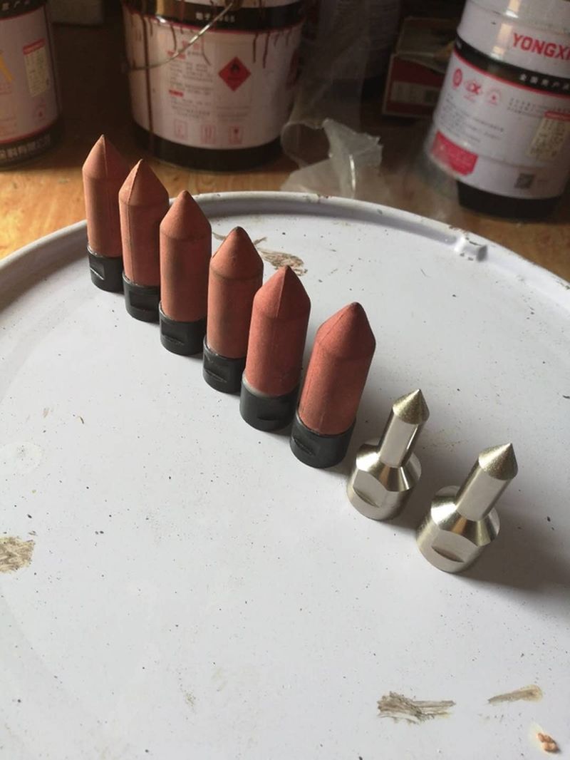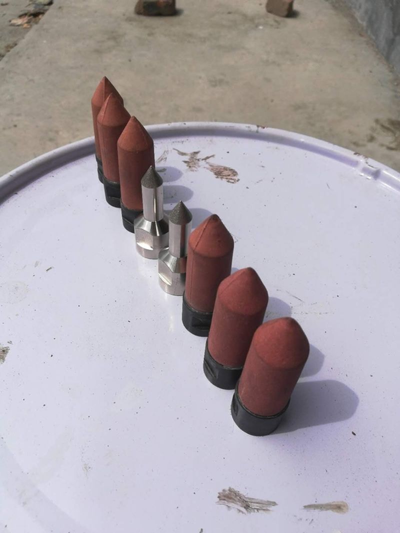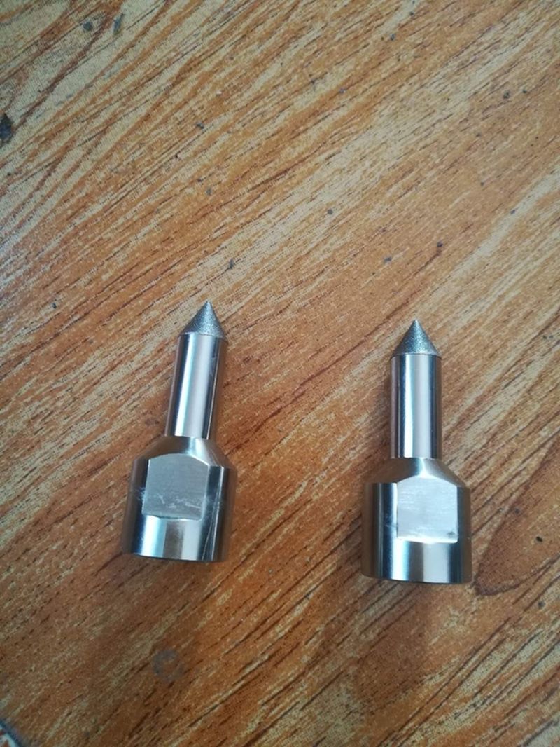 4、砂輪修整機構(gòu)沿砂輪半角母線移動,將砂輪錐面進行**修整。